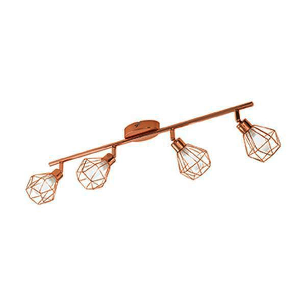 Die LED Deckenleuchte ZAPATA ist aus einem geradlinigen Metall-K?rper in Kupferfarben und mit vier diamantf?rmigen beweglichen Spots aus Draht gefertigt. Kombiniert wurden diese jeweils mit einem innenliegenden satinierten Glas-Element in Wei?. Durch die Lampenschirme entstehen faszinierende Licht- und Schattenspiele, sobald die Leuchte eingeschaltet ist. Die Deckenlampe f?gt sich nahtlos in moderne Einrichtungen ein und bietet Ihnen dank der schwenkbaren Leuchtenk?pfe die M?glichkeit, einzelne Lichtakzente im Raum zu setzen ? egal ob in der K?che, im Wohnzimmer, Schlafzimmer oder Flur. Die LED G9-Leuchtmittel sind im Lieferumfang enthalten und spenden angenehmes warmwei?es Licht.