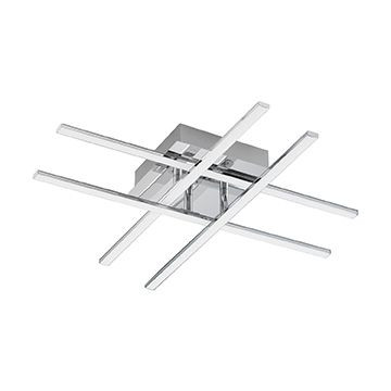 Die LED Deckenleuchte LASANA 1 ist aus chromfarbenem Metall mit vier geraden und ineinander verschachtelten LED Profilen gefertigt. Die integrierten LEDs unter den weißen Kunststoff-Abdeckungen spenden angenehmes, warmweißes Licht. Dank des minimalistischen und modernen Designs bietet Sie eine stilvolle Beleuchtung für jeden Raum – egal ob in der Küche, im Wohnzimmer, Schlafzimmer oder Flur.