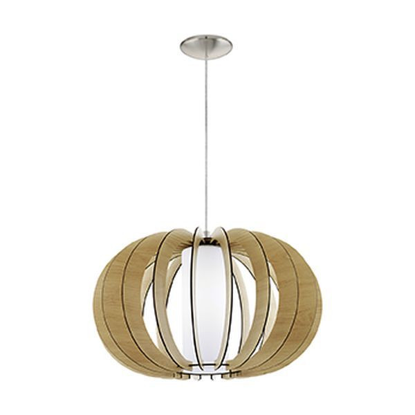 Die Pendelleuchte STELLATO 3 ist mit einem runden Lampenschirm aus ahornfarbenen Holz-Lamellen gefertigt, der von einem nickel-matten Baldachin abgehängt wurde. Der innenliegende weiße Glas-Zylinder rundet den modernen Look der Leuchte ab und sorgt für eine angenehme Beleuchtung. Die Hängelampe fügt sich mit ihrem Durchmesser von 50 cm nahtlos in moderne Einrichtungsstile ein und bietet eine wohnliche Beleuchtung im Wohnzimmer oder im Esszimmer über dem Esstisch. Das Leuchtmittel ist nicht im Lieferumfang enthalten. Geeignet ist die Leuchte für jedes Leuchtmittel mit E27-Sockel.