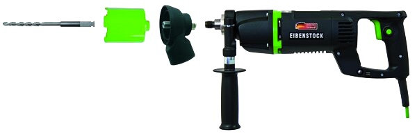 handliche Diamant-Trocken-Kernbohrmaschine im Koffer (inkl. Staubabsaugung HB, Dosensenker für Mauerwerk Ø 82 mm und Zentrierbohrer), ideal zum Dosensenken im Installationsgewerbe, Trockenbohren bis 82 mm Durchmesser in Kalksandstein, Mauerwerk, Klinker, Ziegel und andere abrasive Materialien, Dosensenken, z. B. für Schalter- und Abzweigdosen bei der Elektroinstallation, Elektronik - Sanftanlauf, Temperatur- und Überlastabschaltung, Überlastanzeige, mechanische Sicherheitskupplung, geringes Gewicht bei hoher Leistung, PUR-Baustellenkabel - robust für den harten Baustelleneinsatz, ergonomischer Handgriff und groß dimensionierte Schaltertasten für ermüdungsfreies Arbeiten, Zusatzhandgriff - variabel am Spannhals verstellbar