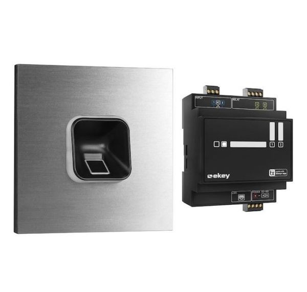 Das Fingerprintset für Sprechanlagen ist eine biometrische Zutrittslösung, die mittels intuitiver Touchbedienung schlüssellosen Zugang zu Gebäuden gewährt, das Set beinhaltet das Sprechanlagenmodul mit integriertem Fingerprint sowie den Controller REG mit 2 Relais, die Administration des Systems erfolgt über die bionyx App