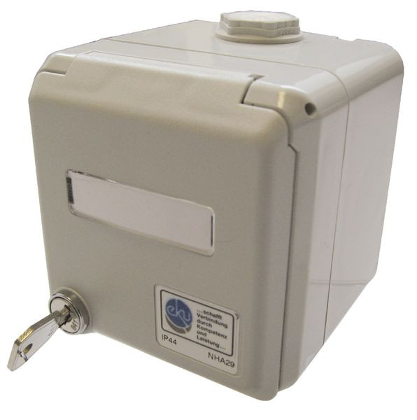 Zubehör für E-Stone Serie, IP 44 AP-Datendose,- Leergehäuse für max. 2 Keystone Module der eku E-Stone Serie,- geeignet für geschirmte und ungeschirmte Modul-Version,- 45° Schrägauslass,- abschließbar,- Kennzeichnung, weißes Papier in Klarsicht-Clip,- Kab