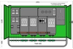 Anschlussschrank mit montiertem Untergestell, bestückt mit: 1 Anschluss als Sicherungslasttrennschalter Gr. NH3 / 500A 1 Wandlerplatz (ohne Wandler) 1 Zählerplatz nach DIN/VDE 43868/1 (ohne Zähler) 1 Hauptsicherung als Lasttrennschalter mit Sicherung Größe NH2 / 400A, mit Abgang 2 Abgang über Sicherungslasttrennschalter Gr.1 / 250A 4 Abgänge über Sicherungslasttrennschalter Gr.00 / 100A (auf Klemmen 35mm²)