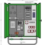 | Kurzbeschreibung | Anschlussverteilerschrank 138 kVA mit Wandlermessung, 3 RCD Typ B und 2 RCD Typ A, 7 CEE-Abgänge 16-125A und 6 Schutzkontakt-Steckdosen |