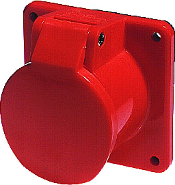 Anbausteckdose gerade 16A, 5P, 6h, IP44/54 Flansch 75x75mm - Lochabstand 60x60mm