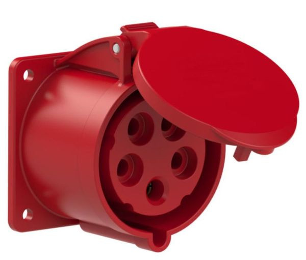 | Kurzbeschreibung | Anbausteckdose gerade 32A, 5P, 6h, IP44/54 Flansch 75x75mm - Lochabstand 60x60mm |