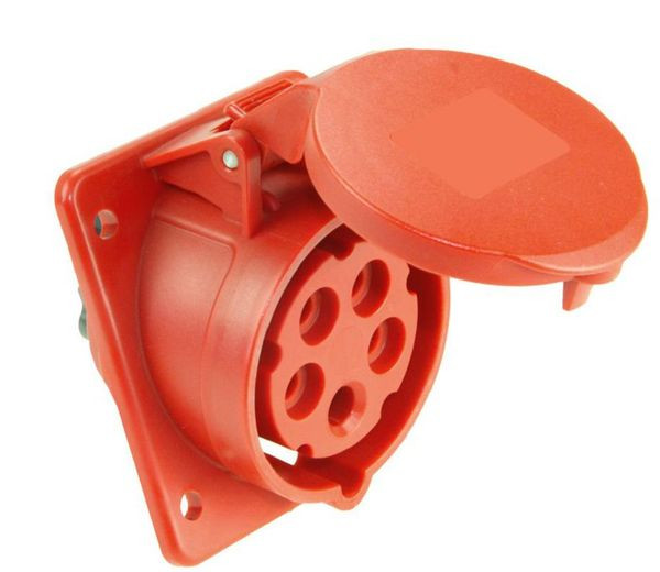 | Kurzbeschreibung | Anbausteckdose schräg 16A, 5P, 6h, IP44/54 Flansch 75x85mm - Lochabstand 60x60mm |
