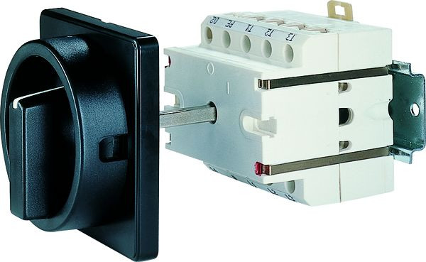 Bodenbefestigung, Betriebsspannung 400 V, Betriebsspannung 400 V, Spulenspan nung 230 V 50 H, Betätigungsgriff schwarz – Frontschild schwarz SS , mit Unterspannungsauslösung