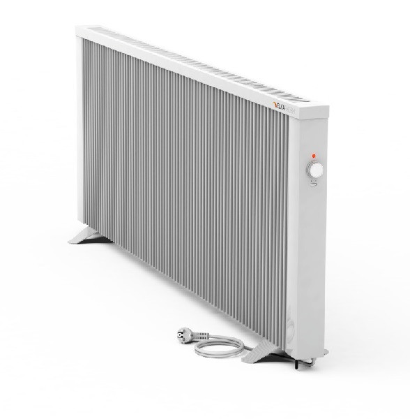 Elektroflächenspeicherheizung PL251/505/410 2,5kW mit manuellem Einbauthermostat und Standfüßen (beiliegend), RAL 9010, 64x168x8 cm