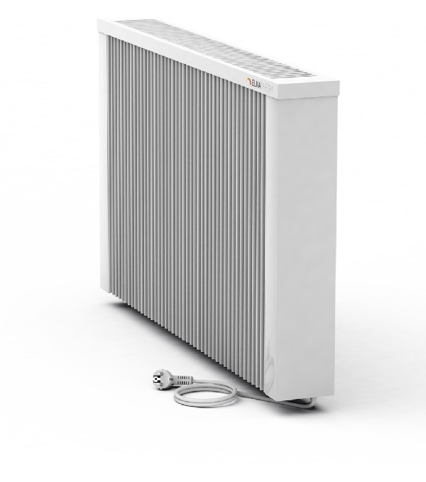 Professional Line - PLD-Serie Standardhöhe 63,0cm. Doppelter Schamotte-Speicherkern für große Räume wie Studios, Lofts oder Korridore. Pulverbeschichtetes Stahlblechgehäuse RAL9010, vollflächig ausgelegt mit imprägnierten Schamottespeichersteinen, Einzelsegmentabschaltung im Falle von Überhitzung durch Abdecken, 230 V Direktanschluss, 1,90 m Netzzuleitung.