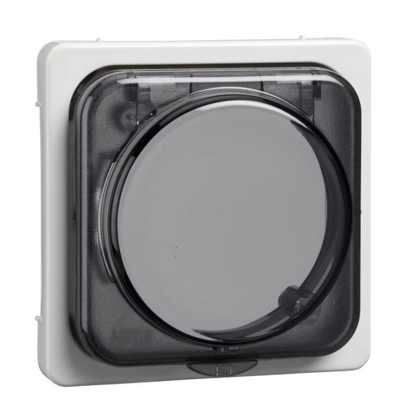 Zentralplatte für Tages-und Wochenzeitschaltuhr für Einsätze Artikelnummer 177100 und 177110, mit transparentem Klappdeckel Farbe: reinweiß.