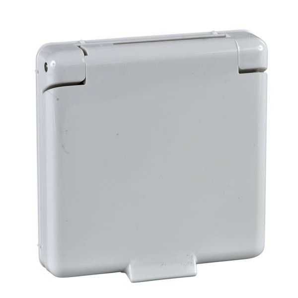 Zentralplatte für Steckdose mit Klappdeckel, zur Komplettierung der Steckdoseneinsätze Artikelnummer 22501- und 22521-. Farbe: reinweiß.