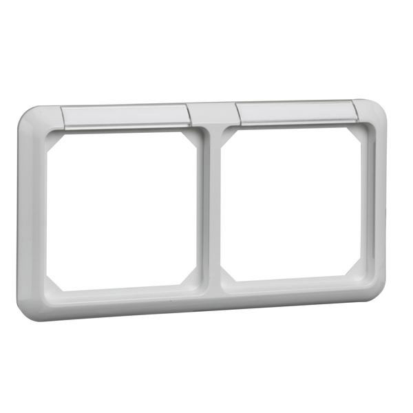 2-fach Rahmen mit Schriftfeld, Farbe reinweiß, geeignet für senkrechte und waagerechte Montage, Durch die Rahmenbreite von 83,5 mm eignet sich ELSO FASHION bruchfest besonders für die Installation in Kanälen mit 80 mm Ausschnitt.