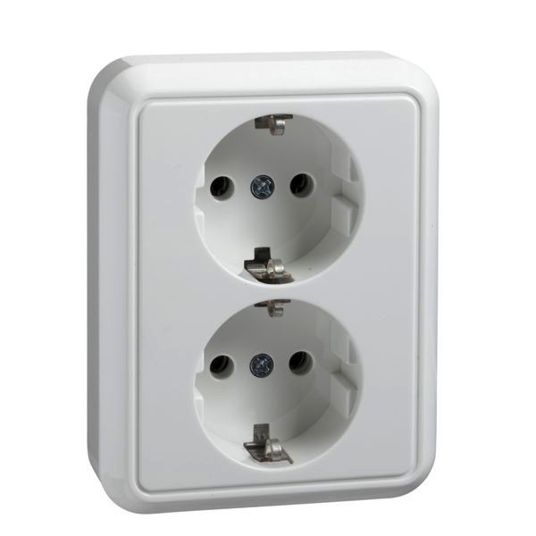 Steckdose 2-fach. Farbe: reinweiß halbversenkt, Abdeckung 80x104x27mm, aus Thermoplast für 55er Einbaudosen Schutzkontakt-Steckdosen 16 A 250V AC für Unterputzmontage. Schutzart IP 20, Schraubklemmen Klemmbereich für Kupferleiter 1,5mm² und 2,5 mm², für den sicheren Anschluss von Aluminiumleitern 2,5 mm² ohne Vorbehandlung.