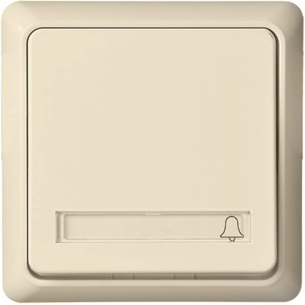 Taster mit Schriftfeld. Farbe: reinweiß, Schriftleisten mit Symbolen Klingel, Licht, Schlüssel und neutral beigelegt, Wippe beleuchtbar, für Unterputzmontage. Schutzart IP 20, Taster 10 A, 250V AC, Rahmen und Wippen aus Thermoplast, auch einsetzbar in Geräteträger mit einer Einbautiefe von mindestens 32 mm. Steckklemmen: Klemmbereich für Informationsleitungen ab Leitungsdurchmesser 0,5mm, für Kupferleiter 1,5 mm und 2,5 mm.