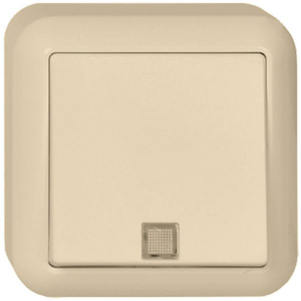 Taster beleuchtet, 10 A 250V AC, Farbe: perlweiß, 1 Schließer, Für Aufputzmontage, Schutzart IP 20, mit Grundplatte, für Montage auf brennbarem Untergrund geeignet. Steckklemmen: Klemmbereich für Informationsleitungen ab Leitungsdurchmesser 0,5mm, für Kupferleiter 1,5 mm und 2,5 mm.