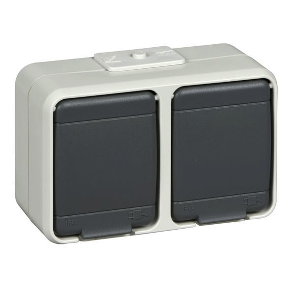 | Kurzbeschreibung | Steckdose 2-fach 16A waagerecht AquaTop Schraubklemme licht/basaltgrau |