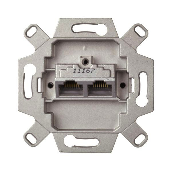 Datendose 8 /8 Kat.6, geschirmte Technik abwärtscompatibel zu Kat.5e 2x RJ45, 2x8-polig, 2x8 LSA Kontakte, farbcodiert nach EIA/TIA 568 A und B Steckebene 45°, für Schraubbefestigung.