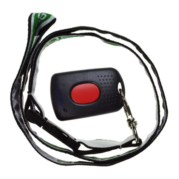 Handsender mit Trageband. Spannungsversorgung: Batterie CR2032. Sendereichweite: typisch 30 m. Funkfrequenz: 868 MHz.