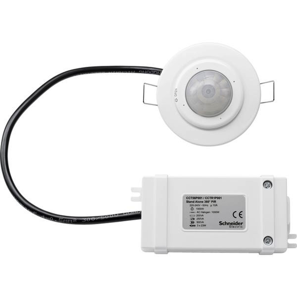 Bewegungsmelder für Zwischendecken im Innenbereich. 360°- Flächenüberwachung. Attraktiver kleiner Sensor. Der Sensor erkennt die Bewegung im Raum. Schaltet das Licht ein und lässt es eingeschaltet, bis keine weitere Bewegung erkannt wird. Schnelle und einfache Einstellungen für Einschaltdauer, Empfindlichkeit und Lichtempfindlichkeit. Das Gerät besteht aus dem Sensor und einer Leistungsbox mit einem fest angebrachten Kabel (35 cm). Der Sensor wird in 63 mm breiten Deckenöffnungen installiert. Netzspannung 220-240 V AC, 50 Hz. Max. Schaltstrom 10 A, AC 220-240 V, cos Phi 0,6. Nennleistung Glühlampen 1000 W. Halogenlampen AC 230V 1000 W. Halogen mit elektronischem Wandler 250 VA. Halogen mit Eisenkerntransformator 500 VA. Erfassungswinkel 360° Bereich Radius von max. 4 m (bei einer Einbauhöhe von 3 m). Lichtempfindlichkeit (Lux-Einstellung) 5-2000 Lux. Zeiteinstellung ca. 5 s bis ca. 8 Min.