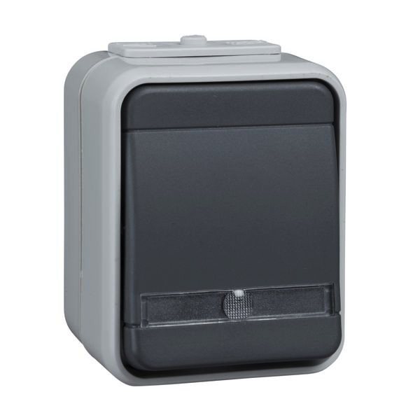 | Kurzbeschreibung | Taster beleuchtet 10A AQUATop Steckklemme licht/basaltgrau |