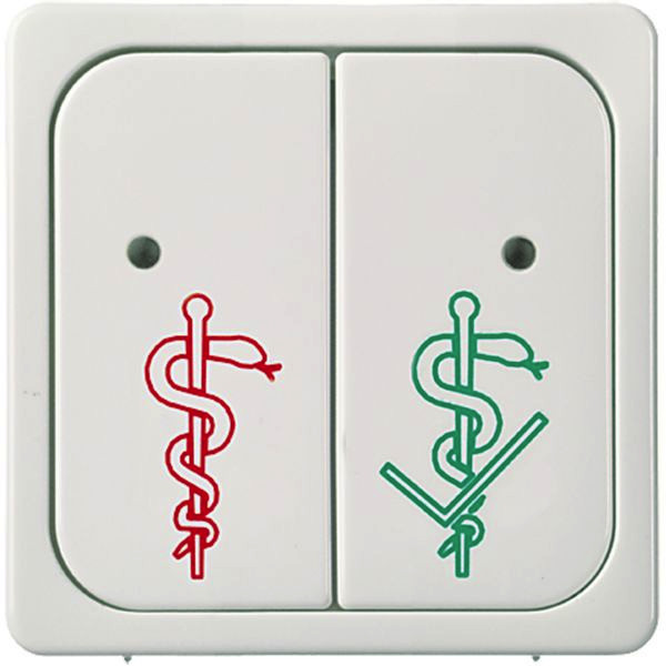 MEDIOPT care. Tastfläche 2-fach für Arztruf-/Abstelltaster (Art. 735070) mit Symbolaufdruck für ELSO JOY, Farbe reinweiß.