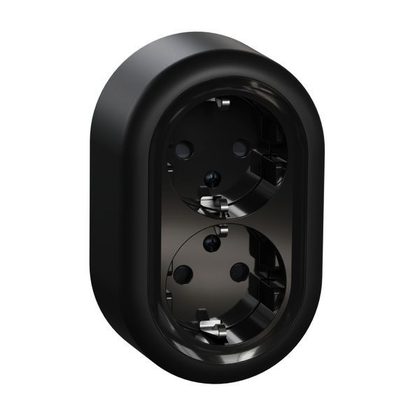 Doppelsteckdose mit erhoetem Beruerungsschutz 16A / 250VAC Steckklemme AufputzKomplettgerät inklusive Aufputzgehaeuse. Design: RENOVA Farbe schawarz.