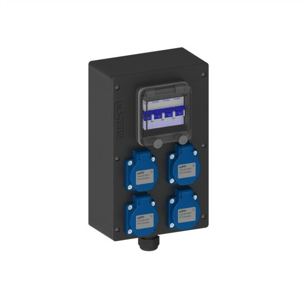 | Kurzbeschreibung | Wandverteiler Vollgummi 4xSchuko,über 4xMCB B-Char/1pol/16A, in: M25 |