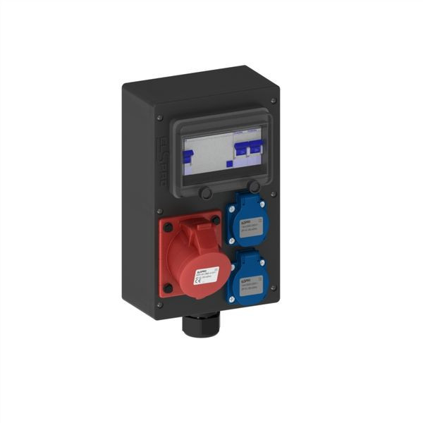 | Kurzbeschreibung | Wandverteiler Vollgummi 1xCEE32/5,2xSchuko, MCB, RCD 4pol/40A/30mA, in: M32 |