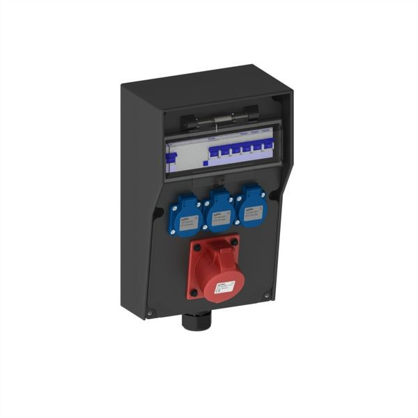 | Kurzbeschreibung | Wandverteiler Vollgummi 1xCEE32/5,3xSCH, MCB, RCD |
