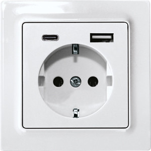 | Kurzbeschreibung | Schutzkontakt-Steckdose mit USB-A und USB-C, reinweiß glänzend |
