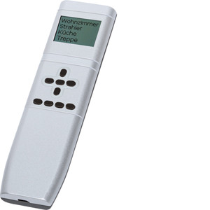 | Kurzbeschreibung | Funk-Fernbedienung mit Display und Akku. Oberseite alu lackiert, Unterseite Anthrazit-Soft-Lackierung. Mit Wandhalter und Ladegerät. |