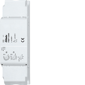 Schaltaktor Beschattungselemente und Rollladen für einen 230V-Motor. 1+1 Schließer 4A/250V AC, nicht potenzialfrei. Verschlüsselter Funk, bidirektionaler Funk und Repeater-Funktion zuschaltbar. Stand-by-Verlust nur 0,8 Watt. Montage in die 230V-Netzanschlussleitung, zum Beispiel in Zwischendecken. 146mm lang, 46mm breit und 31mm tief. Kontaktschaltung im Nulldurchgang zur Schonung der Kontakte und Motoren. Der Motor wird an 1, 2 und N angeschlossen. Beim Ausfall der Versorgungsspannung wird definiert ausgeschaltet. Die Taster können entweder als Richtungstaster oder als Universaltaster eingelernt werden: Örtliche Steuerung mit Universaltaster: Mit jedem Impuls wechselt die Schaltstellung in der Reihenfolge Auf, Halt, Ab, Halt. Örtliche Steuerung mit Richtungstaster: Mit einem Tastimpuls oben wird die Schaltstellung Auf gezielt aktiviert. Mit einem Tastimpuls unten wird hingegen die Schaltstellung Ab gezielt aktiviert. Ein weiterer Impuls von einem der beiden Taster unterbricht den Ablauf sofort. Zentralsteuerung dynamisch ohne Priorität: Mit einem Steuersignal eines als Zentralsteuerungstaster ohne Priorität eingelernten Tasters wird gezielt die Schaltstellung Auf oben oder Ab unten aktiviert. Ohne Priorität deswegen, weil diese Funktion von anderen Steuersignalen übersteuert werden kann. Zentralsteuerung dynamisch mit Priorität: Mit einem Steuersignal von mindestens 2 Sekunden eines als Zentralsteuerungstaster mit Priorität eingelernten Tasters wird gezielt die Schaltstellung Auf oben und Ab unten aktiviert. Mit Priorität deswegen, weil diese Steuersignale nicht von anderen Steuersignalen übersteuert werden können, solange, bis der Zentralbefehl durch einen Tastimpuls Auf oder Ab von dem Zentralsteuertaster wieder aufgehoben wird. Mit einem Steuersignal, z.B. eines als Zentralsteuerungstaster mit Priorität eingelernten FSM61, werden gezielt die Schaltstellung Auf oder Ab und die Priorität aktiviert. Mit Priorität deswegen, weil diese Steuersignale nicht von anderen Steuersignalen übersteuert werden können, solange, bis der Zentralbefehl durch das Ende des Steuersignals wieder aufgehoben wird. Beschattungsszenen-Steuerung: Mit einem Steuersignal eines als Szenentaster eingelernten Tasters mit Doppelwippe oder automatisch durch einen zusätzlich eingelernten Funk-Außen-Helligkeitssensor FAH60 können bis zu 4 zuvor hinterlegte Ab-Laufzeiten abgerufen werden. Bei Steuerung über die GFVS-Software können Fahrbefehle für Auf und Ab mit der exakten Fahrzeitangabe gestartet werden. Da der Aktor nach jeder Aktivität, auch bei durch Taster ausgelöstes Fahren, exakt die gefahrene Zeit zurückmeldet, wird die Position der Beschattung in der GFVS-Software immer korrekt angezeigt. Bei Erreichen der Endlagen oben und unten wird die Position automatisch synchronisiert. Funktions-Drehschalter unten: AUTO 1 = In dieser Stellung des Drehschalters ist die Komfortwendefunktion für Jalousien eingeschaltet. Bei der Steuerung mit einem Universaltaster oder einem Richtungstaster bewirkt ein Doppelimpuls das langsame Drehen in die Gegenrichtung, welches mit einem weiteren Impuls gestoppt wird. AUTO 2 = In dieser Stellung des Drehschalters ist die Komfortwendefunktion für Jalousien ganz ausgeschaltet. AUTO 3 = In dieser Stellung des Drehschalters wirken die örtlichen Taster zunächst statisch und lassen so das Wenden von Jalousien durch Tippen zu. Erst nach 0,7 Sekunden ständiger Ansteuerung schalten sie auf dynamisch um. AUTO 4 = In dieser Stellung des Drehschalters wirken die örtlichen Taster nur statisch (ER-Funktion). Die Rückfallverzögerung RV (Wischzeit) des oberen Drehschalters ist aktiv. Eine Zentralsteuerung ist nicht möglich. Pfeil nach oben, Pfeil nach unten = Die Handsteuerung erfolgt in den Positionen Pfeil nach oben (Auf) und Pfeil nach unten (Ab) des unteren Drehschalters. Die Handsteuerung hat Priorität vor allen anderen Steuerbefehlen. WA = Die Wendeautomatik für Jalousien und Markisen wird mit dem mittleren Drehschalter eingestellt. 0 = ausgeschaltet, sonst zwischen 0,3 und 5 Sekunden eingeschaltet mit eingestellter Wendezeit. Hierbei wird nur bei Ab nach Ablauf der mit dem oberen Drehschalter eingestellten Verzögerungszeit eine Drehrichtungsumkehr vollzogen, um z. B. Markisen zu spannen oder Jalousien in eine bestimmte Position zu stellen. Unter dem RV-Drehschalter befindet sich die LED-Anzeige für die Wendezeit. RV = Die Verzögerungszeit (Rückfallverzögerung RV) wird mit dem oberen Drehschalter eingestellt. Befindet sich der FSB in der Stellung Auf oder Ab, so läuft die eingestellte Verzögerungszeit, an deren Ende das Gerät automatisch auf Halt umschaltet. Die Verzögerungszeit muss daher mindestens so lange gewählt werden, wie das Beschattungselement oder der Rollladen benötigt, um von einer Endstellung in die andere zu kommen. Unter dem RV-Drehschalter befindet sich die LED-Anzeige für die Verzögerungszeit RV. Werden ein oder mehrere Funk-Fenster-Türkontakte FTK oder Hoppe-Fenstergriffe eingelernt, ist bei geöffneter Türe ein Aussperrschutz eingerichtet, welcher einen Zentral-Ab-Befehl sperrt. Die LED unter dem oberen Drehschalter begleitet den Einlernvorgang gemäß Bedienungsanleitung und zeigt im Betrieb Steuerbefehle durch kurzes Aufblinken an.