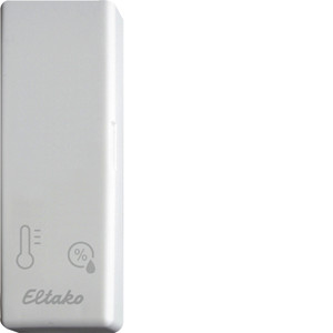 Funk-Temperatur-Feuchtesensor, reinweiß glänzend und anthrazit matt 75x25x12mm, mit Batterie (Lebensdauer 5 Jahre). Smart Home Sensor. Der Funk-Temperatur-Feuchtesensor misst die relative Luftfeuchtigkeit zwischen 0 und 100% (+-5%) und die Temperatur zwischen -20°C und +60°C (+-0,5°C). Er sendet bei einer Änderung innerhalb von 2 Minuten ein Datentelegramm in den ELTAKO-Gebäudefunk. Erfolgt keine Änderung wird alle 10 Minuten ein Statustelegramm gesendet. Befestigung durch Kleben, eine Klebefolie liegt bei. Die Elektronik wird von einer innenliegenden Knopfzelle CR2032 versorgt. Zum Wechseln muss lediglich das Gehäuse geöffnet werden. Dies ist auch zum Aktivieren der Batterieversorgung durch Herausziehen eines Isolierstreifens erforderlich. Der Funksensor kann in nachstehende Aktoren und imController eingelernt werden: FAE14, FHK14, F4HK14, F2L14, FHK61, FME14.