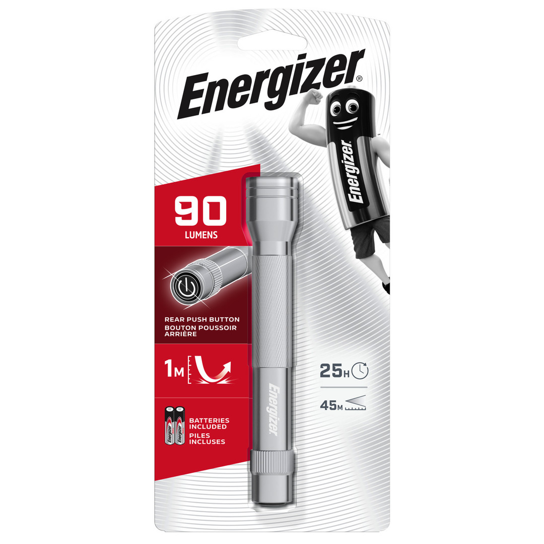 Hell und langlebig, ist die Energizer® Metal LED Flashlight. Diese bewährte Wahl für Anforderungen im Haushalt und bei der Arbeit. Ausgestattet mit einem robusten Metallgehäuse und moderner LED-Technik, leuchtet diese ergonomische Lösung im Vergleich zur Standard-LED-Technik bis zu vier Mal heller. Sie liefert stundenlang klares, gleichmäßiges Licht für eine große Vielzahl von Aufgaben im Haushalt und bei der Arbeit.