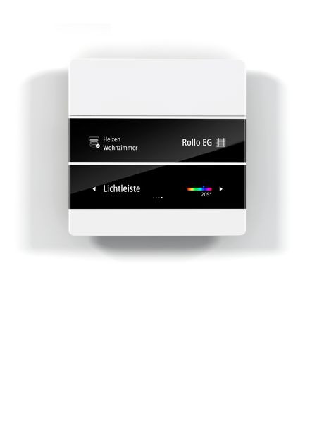 Der KNX Raumcontroller ermöglicht präzise Temperaturregelung und Tastsensorsteuerung über mechanische Wippen, in einem Gehäuse aus Voll-Aluminium. Die hochauflösenden Wippendisplays nutzen alterungsbeständige Farb-TFT (IPS) Technologie (480x60 Punkte). Er bietet eine zweistufige Raumtemperaturregelung für Heizen und Kühlen, steuert bis zu vier Reglernebenstellen und Splitunits, sowie eine dreistufige Lüftersteuerung. Mit 32 Kanälen unterstützt er Schalten, Dimmen, Farblichtsteuerung und mehr. Integrierte Sensoren für Temperatur, Luftfeuchtigkeit, Licht sowie ein radarbasierten Bewegungsmelder ergänzen die Funktionen. Alarm- und Logikfunktionen, eine Meldefunktion für KNX-Ereignisse, 310 Icons, und Unterstützung mehrerer Schriftsätze runden das Angebot ab. Zwei mechanische Schaltwippen bieten bis zu 40 Schaltfunktionen. Maße: 90 x 90 x 14,6 mm.