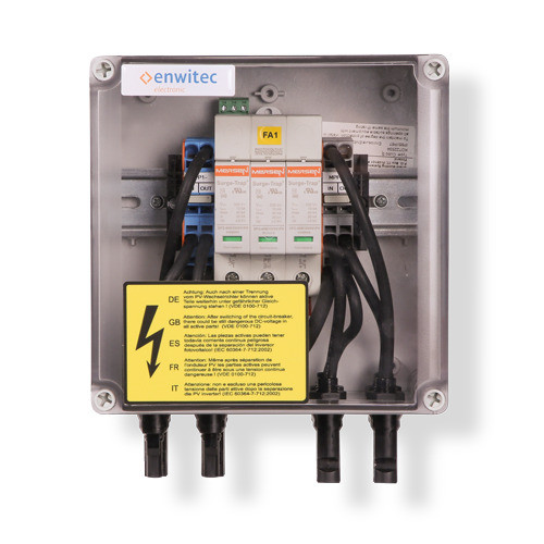 DC-Generatoranschlusskästen sind unverzichtbare Komponenten für private und gewerbliche Photovoltaikanlagen. Der GAK-S-1000-2R-X-Y-PC-1.1_MC4 (Artikelnummer 10015744) ist ein leistungsfähiges Beispiel für diese Technologie. Ausgelegt für eine maximale Systemspannung von 1000 VDC, verfügt er über einen MPP-Tracker mit jeweils zwei Strings im Ein- und Ausgang. Obwohl keine Strangsicherung integriert ist, bietet er einen robusten Überspannungsschutz der Klasse II/C. Die Anschlüsse erfolgen über MC4-Stecker, was eine einfache und sichere Installation ermöglicht. Mit einem Bemessungsstrom Isc von 32 ADC und 16 ADC pro Strang ist er für typische Anwendungen in der Photovoltaik optimal dimensioniert. Der kompakte Anschlusskasten misst 175 x 175 x 100 mm (BxHxT) und wiegt 2 kg, was eine flexible Montage erlaubt. Es ist zu beachten, dass dieser GAK keinen integrierten Trennschalter besitzt. Für detaillierte technische Informationen und optimale Integration in die jeweilige Photovoltaikanlage sollte das Datenblatt sorgfältig konsultiert werden.