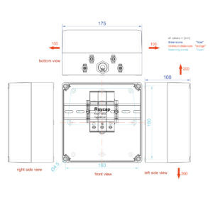 "Bem.-Isolierspannung Ui [VDC]: 1000 Bem.-Betriebsspannung Ue [VDC]: 1000 Anzahl unabhängige MPP Eingänge [n]: 1 Anzahl Stränge pro MPP IN [n]: 1 Anzahl Stränge pro MPP OUT [n]: 1 Bemessungsstrom InA (=Summe Isc STC) [ADC]: 32 Auslegungsstrom* Isc max [ADC]: 40 (=Summe Isc STC x 1,25) PRO STRANG: Bemessungsstrom Inc (=Isc STC) [ADC]: 32 Auslegungsstrom* Isc max [ADC]: 40 (= Isc STC x 1,25) Umgebungstemperatur: -25°C - +35°C (kurzzeitig 40°C) Überspannungsschutz: Klasse II/""C"" Sicherungshalter: - Sicherung: - Lasttrennstelle: - Eingang: Sunclix Ausgang: Sunclix Schutzklasse: II IP Schutzart: IP65 Konformität: IEC 61439-1/2 Art der Montage: Wandmontage Abmessungen:(BxHxT)mm 175 x 175 x 100 Gehäuse: Polycarbonat (PC) Gehäuse mit transparentem Schraubdeckel Montageart: Im Innenbereich oder im geschützten Außenbereich (KEINE direkte Bewitterung!) Einführungen 1x Sunclix-Paar am Eingang und 1x Sunclix-Paar am Ausgang Erde: 1x M20 (d= 6,0-13,0) * der Auslegungsstrom ISC MAX lt. VDE 0100-712:2016-10 beinhaltet den Faktor 1,25 für ISC STC des PV-Moduls, bzw. des PV-Stranges"