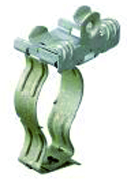 Federstahlbefestigung mit Schnappverschlusssystem, die das Kabelschutzrohr unterhalb oder oberhalb des Flansches trägt. 35 bis 42 mm Kabel oder Kabelschutzrohr an 8 bis 14 mm Flansch, Montage am unteren Flansch.