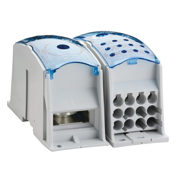 Verteilerblock für eine einfache Montage und Verteilung von mehreren Leitungen mit verschieden Querschnitten Einpoliger Verteilerblock UDF12C800AL, Aluminium.