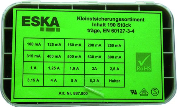 je 10 Stück 100 mA bis 6,3 A und 10 Haltern. bestückt mit 190 Kleinstsicherungen. je 10 Stück 100 mA bis 6,3 A und 10 Haltern.