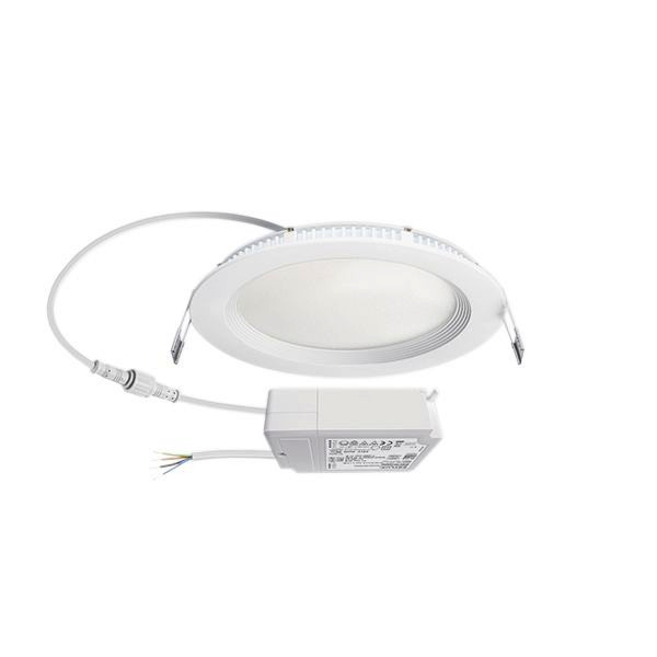 LED-Downlight, 9 W für Deckeneinbau. Einbauleuchte mit opaler Abdeckung (Diffusor). Hochwertiges Gehäuse, Leuchtenkörper aus Aluminium, weiß pulverbeschichtet (RAL 9003). Einsetzbar als Deckeneinbau ohne weiteres Zubehör. Farbtemperatur: 4000 K mit geringsten Farbtoleranzen. Lichtstrom: 850 lm. Gute Lichtqualität. Sehr gute Systemeffizienz. Bemessungslebensdauer L80B50 bei 25 °C: 40000 h. Betriebsgerät: DALI SwitchDIM (bereits im Lieferumfang enthalten).