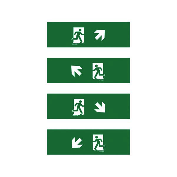 Piktogramm-Satz für Einzelbatterie-Notleuchten der Serie SLX 14 Flat. Satz bestehend aus 4 Piktogramm-Folien mit Erkennungsweite 14 m (DIN/EN) (Pfeil rechts oben, links oben, rechts unten und links unten)..