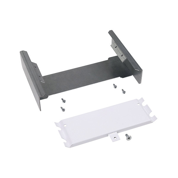 Verbindungskupplung zum Verbinden von LENJA-Pendelleuchten in Reihe. Verbindungsstück aus Metall wird anstelle der Endstücke in beide Leuchtenprofile eingeschoben. Abdeckplatte aus pulverbeschichtetem Stahlblech verschließt Öffnung auf der Leuchtenoberseite und wird festgeschraubt.