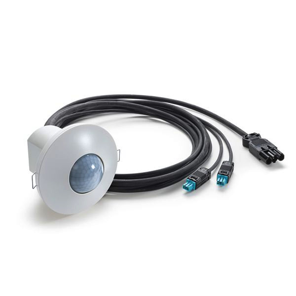 Präsenzmelder mit 360° Erfassungsbereich für die Deckenmontage. Reichweite von bis zu 8 m im Durchmesser bei einer empfohlenen Montagehöhe von 3 m. 2,0 m vorkonfektionierte GST18I3 Leitung. 2,0/3,0 m vorkonfektionierte BST 14 Leitung. Automatische Lichtsteuerung von DALI oder DALI-2 Betriebsgeräten auf ein konstantes Helligkeitsniveau in Abhängigkeit von Anwesenheit und Tageslicht. Fest hinterlegtes Werksprogramm für eine sofortige Betriebsbereitschaft. Einfache Programmierung per Fernbedienung mit "blue mode" Technologie. Fernbedienbarkeit deaktivierbar (Sabotageschutz). Ausblendung von Störquellen durch Reduzierung der Sensitivität per DIP-Schalter. Zusätzlicher Tastereingang pro Kanal. Melder kann als Voll- oder Halbautomat genutzt werden. Reduzierung der Lichtleistung nach Ablauf der Nachlaufzeit als Orientierungslicht für Flure und Durchgangsbereiche, einstellbar zwischen 10-50% . Integrierte Ausschaltvorwarnung. Standardausführung als Unterputzgerät. Aufputz- bzw. Deckeneinbaumontage mit Zubehör. Abdeckblende und Designring einfach wechselbar/lackierbar (in der Farbe "silber" als Zubehör erhältlich). Erweiterung des Erfassungsbereichs durch Anschluss von Slave-Geräten. Gezielte Ausblendung von Bereichen mittels beiliegender Linsenmaske.