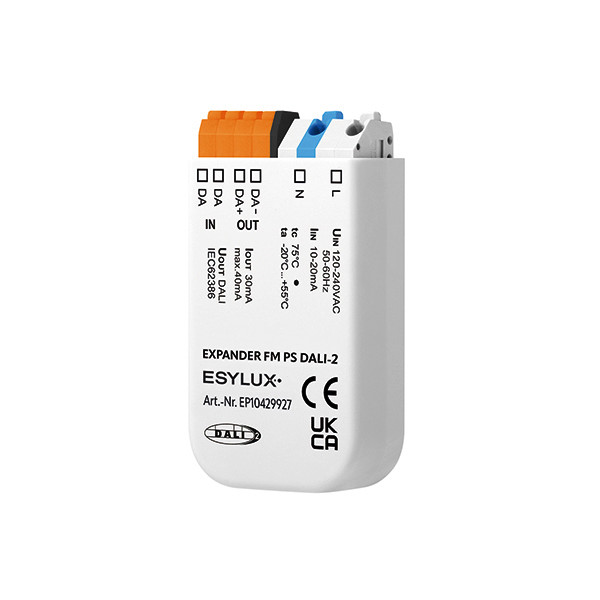 | Kurzbeschreibung | DALI-2-Erweiterung (Expander) für die Steuerung zusätzlicher DALI-2-Betriebsgeräte über eine einzige DALI-Adresse. |