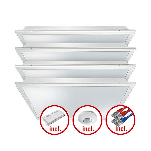 Vorkonfiguriertes, einbaufertiges Lichtsystem mit ESYLUX Light Control ELC. Optimiert für Büros bis ca. 20 m². Lieferumfang: 4x ELC-Leuchten mit opalem Diffusor, Kabel mit RJ45 Steckern, Ferrite, ELC-Steuerung, ELC-Präsenzmelder mit Anschlußkabel RJ10. Einsetzbar als Deckeneinlegeleuchte für Systemdecken mit verdeckten oder sichtbaren Tragschienen für Systemmaß 600 mm x 600 mm (Bitte Besonderheiten und evtl. Einschränkungen des Deckensystemherstellers beachten!). Bildschirmarbeitsplatztauglich nach EN 12464-1. Einfaches Parametrieren, Fernsteuern und Dokumentieren per ESY-App. Farbtemperatur 2700-6500 K (Tunable White).