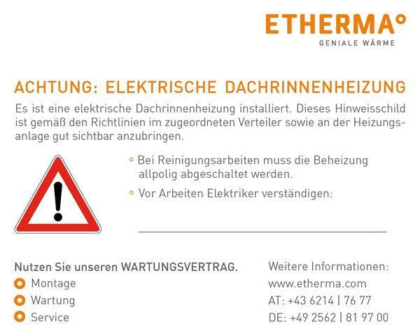 | Kurzbeschreibung | Warnaufkleber "Achtung elektrische Dachrinnenheizung" |