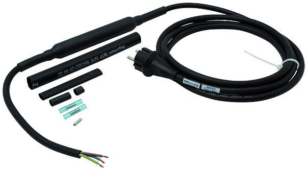 Werkseitige Konfektionierung von maßangefertigten Dachrinnenheizbändern mit Doppelthermostat in Anschlussmuffe, inkl. 3 m Steckerleitung und Endabschluss. Das Thermostat ist zu 100 % feuchtigkeitsgeschützt und ist im Bereich zwischen -5 °C und +3°C eingeschalten. Unter -5 °C und über +3°C wird es wieder ausgeschaltet. Die Steckeranschlussleitung ist 3 m lang und UV-beständig.