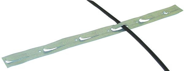 Metallflachband mit Fixierungslaschen alle 25 mm, zur einfachen Positionierung von Anschlussleitungen, Rolle: 20 m.